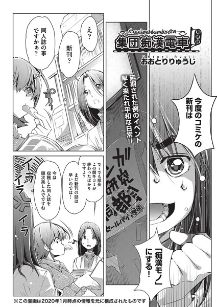 今すぐエロ同人作品を見る!痴●が乗り合わせる電車の中で、女の子達が取り囲まれ、衣服の隙間より肉体をまさぐられる…集団痴●電車シリーズの完結編!!最後のターゲットは同人活動に勤しむマン研女子達。新刊のテーマを電車痴●に絞りとした女子達はいざ資料集めとばかりに乗車。男達が密集する車内に制服女子が乗り込めば、必然と伸ばされてくるいくつもの手。その短いスカートをめくり、シャツをもたくし上げ、白い下着の中にまで無遠慮に侵入してくる欲望の這いずり。この体験を乗り越えて女の子達の新刊は無事完成となるのか──!?